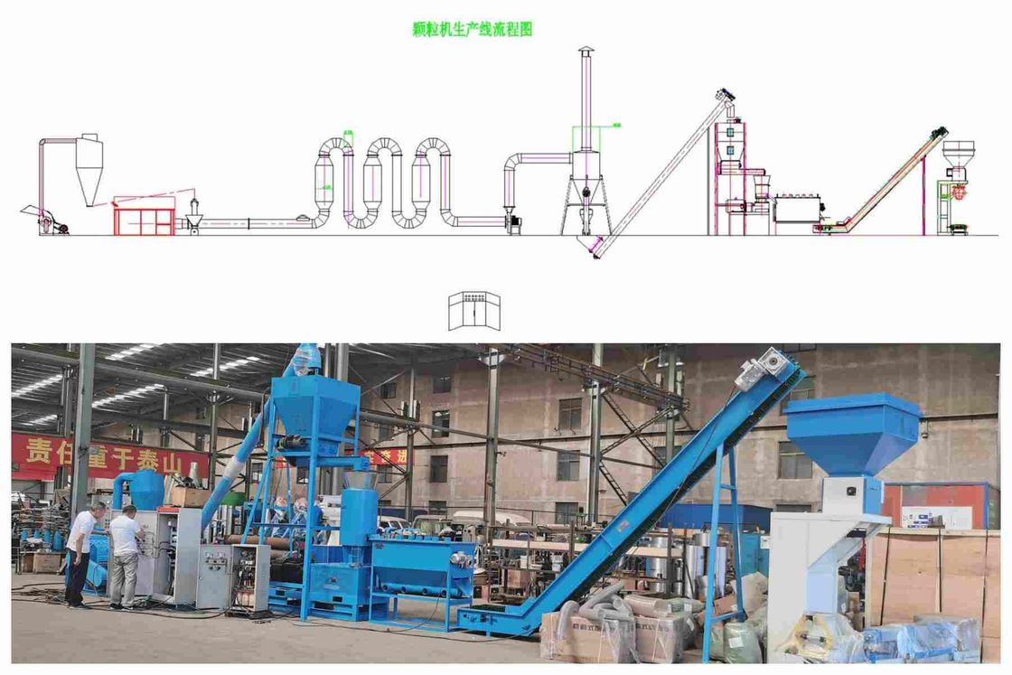 OEM 400-600kg/H complete Wood Pellet Production Line With Dryer Machine make 6mm pellets